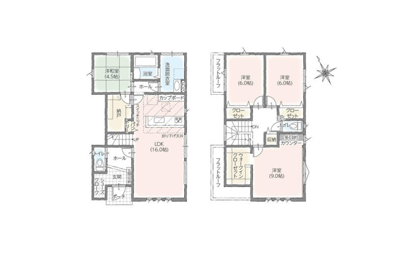 | 設備 | 上水道、下水道、システムキッチン、IHクッキングヒーター、トイレ2箇所、温水洗浄便座、洗面台、洗濯機置場、室内洗濯機置場、浴室乾燥機、エアコン、フローリング、照明器具付き、複層ガラス、オール電化、ウォークインクローゼット、床下収納、シューズインクローゼット、モニタ付インターホン | ||